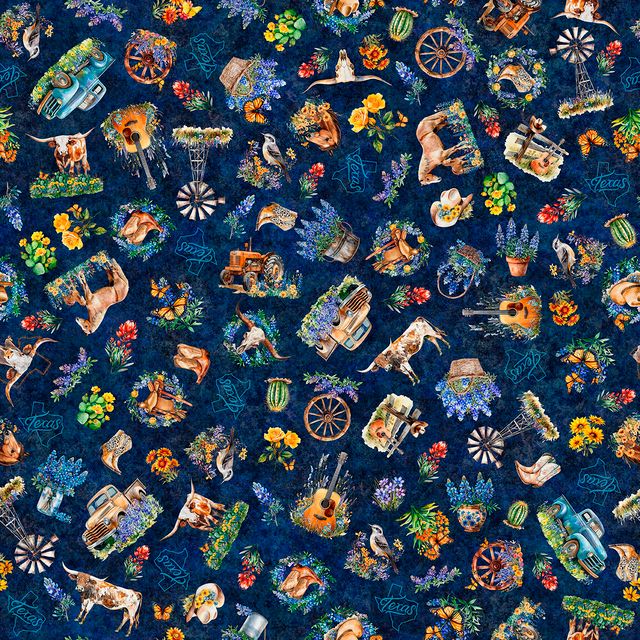 All Texas Shop Hop 2026 Texas Vignettes Toss Navy 31792-N QT Fabrics
